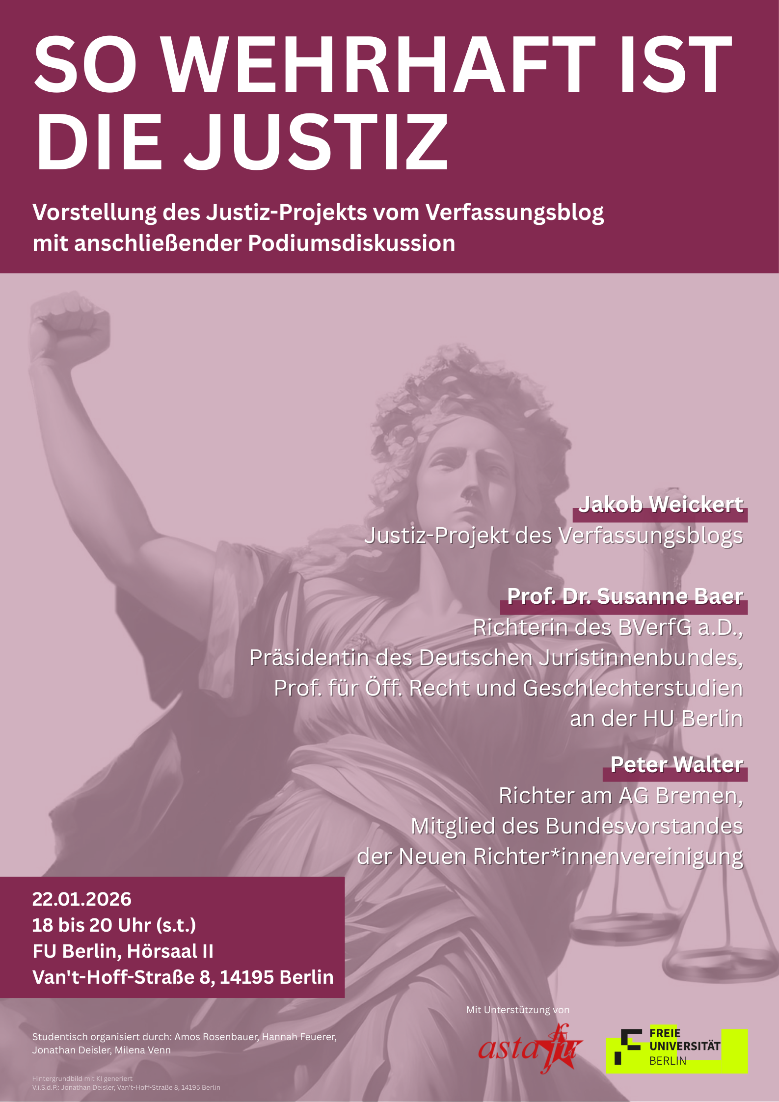 So wehrhaft ist die Justiz. Vorstellung des Justiz-Projekts vom Verfassungsblog mit anschließender Podiumsdiskussion